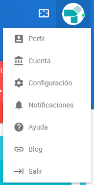 En la esquina superior derecha de la plataforma, se localiza el ícono del perfil. Al seleccionar el ícono se despliegan las siguientes opciones:
