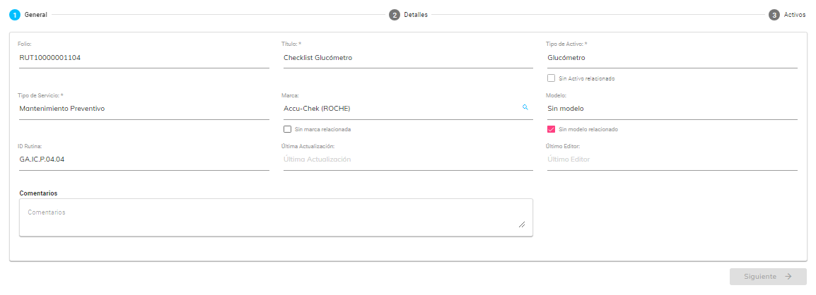 - General: En esta sección, se visualizarán y podrán editarse los datos generales de la rutina, los cuales fueron indicados al momento de darla de alta.