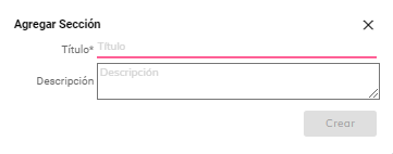 El módulo cuenta con las opciones de Agregar Sección y Agregar Tarea. Las secciones representan procesos que pueden incluir múltiples tareas y se dividen en uno o varios pasos dentro de la rutina, ajustándose según lo requiera el tipo de rutina y activo. Las secciones estarán numeradas, comenzando desde 1.0. Al seleccionar Agregar Sección, se podrá crear una nueva sección con el título y la descripción que se consideren necesarios.