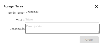 - Checkbox: Al generar una tarea, se tendrá la opción de marcar entre tres opciones: Pasó, No Pasó y No Aplica (N/A). Se solicitará que se indiquen el Título* y la Descripción de la tarea. Esta funcionalidad puede ser utilizada, por ejemplo, para realizar pruebas.