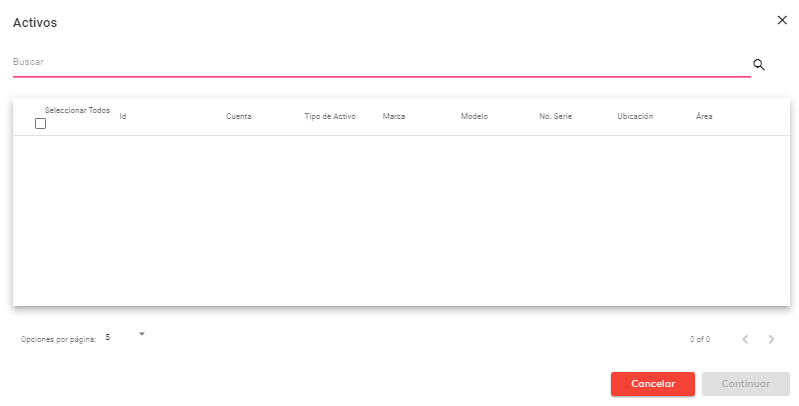 En la esquina superior derecha aparecerá la opción Agregar Activo. En esta sección, se podrán seleccionar los activos a los cuales se aplicará la rutina. Solo se listarán los activos que correspondan al Tipo de Activo indicado durante la creación de la rutina.