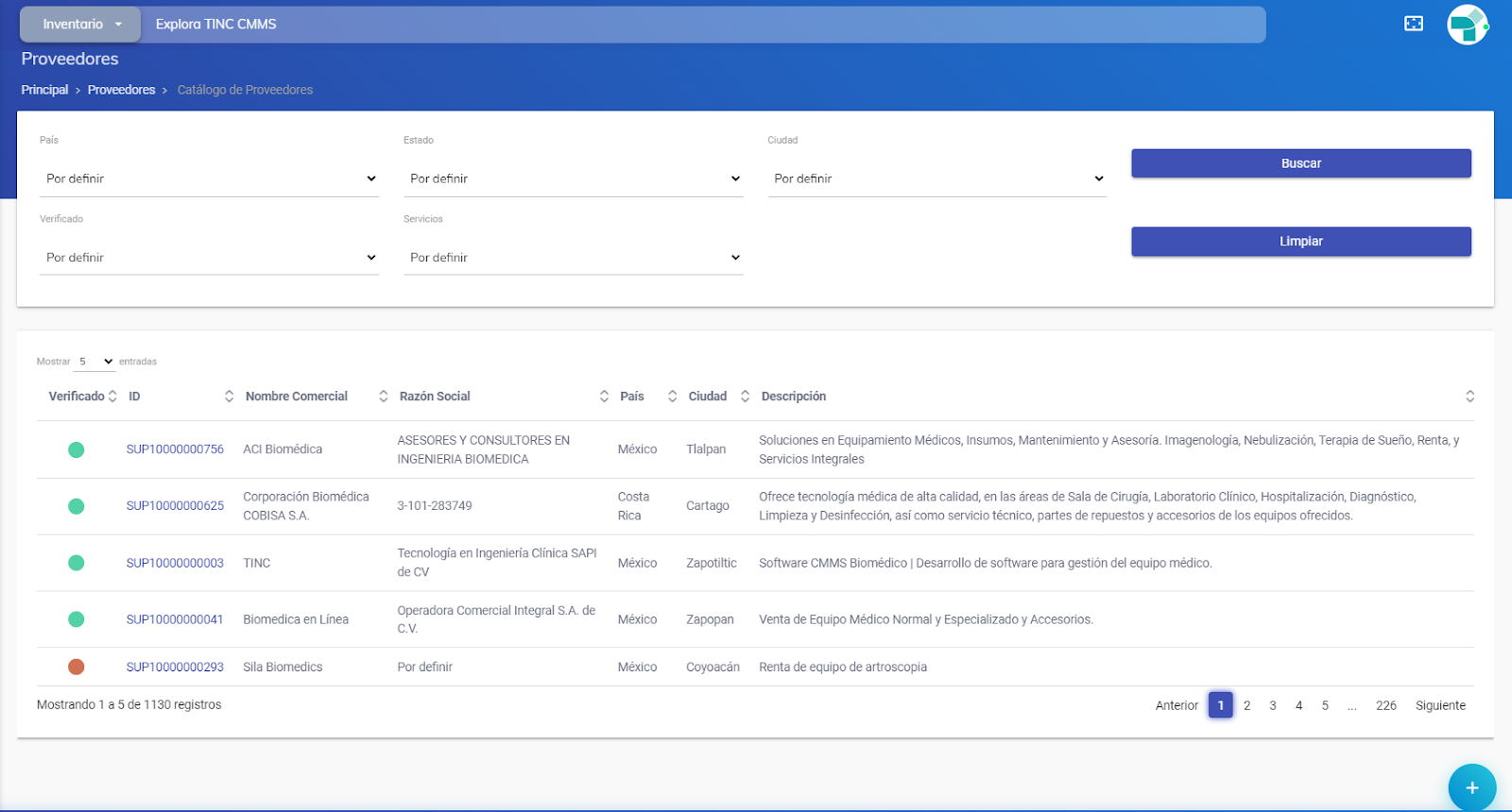 Cuenta con filtros para facilitar la b煤squeda de proveedores dentro del cat谩logo.