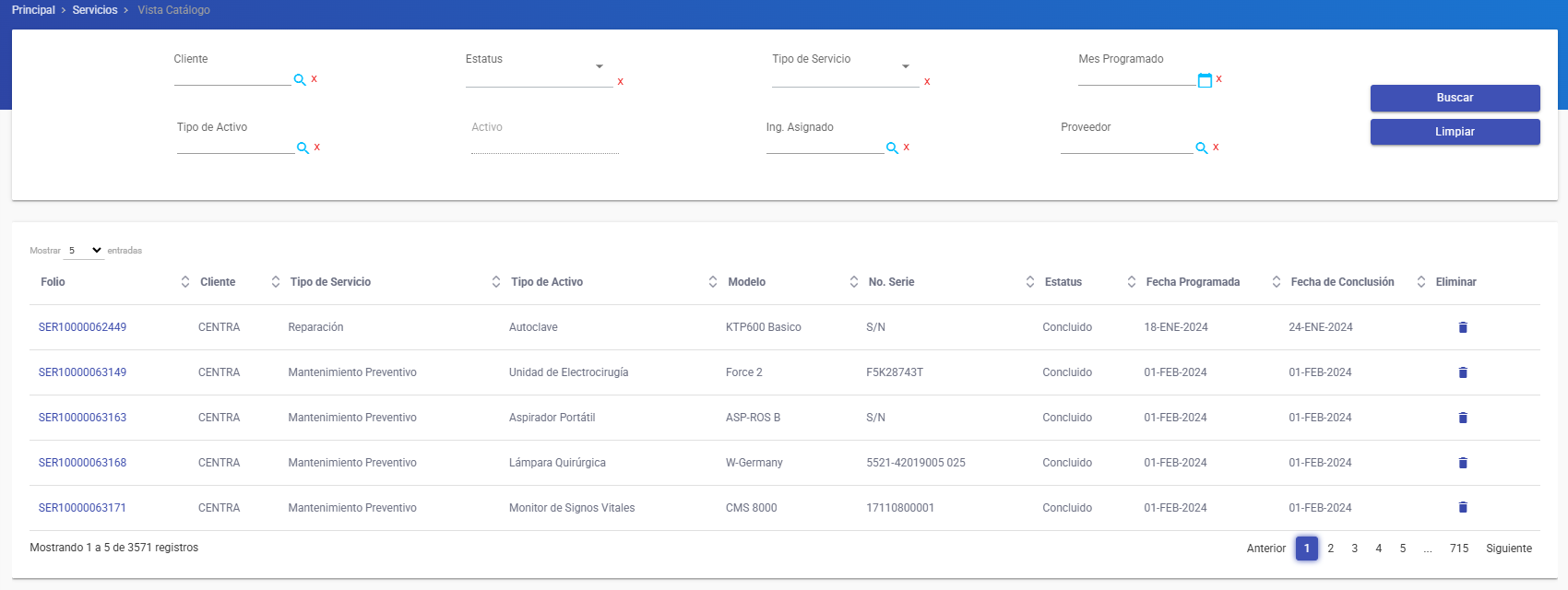 Este m贸dulo permite dar seguimiento a servicios programados y concluidos, as铆 como aplicar filtros de b煤squeda.