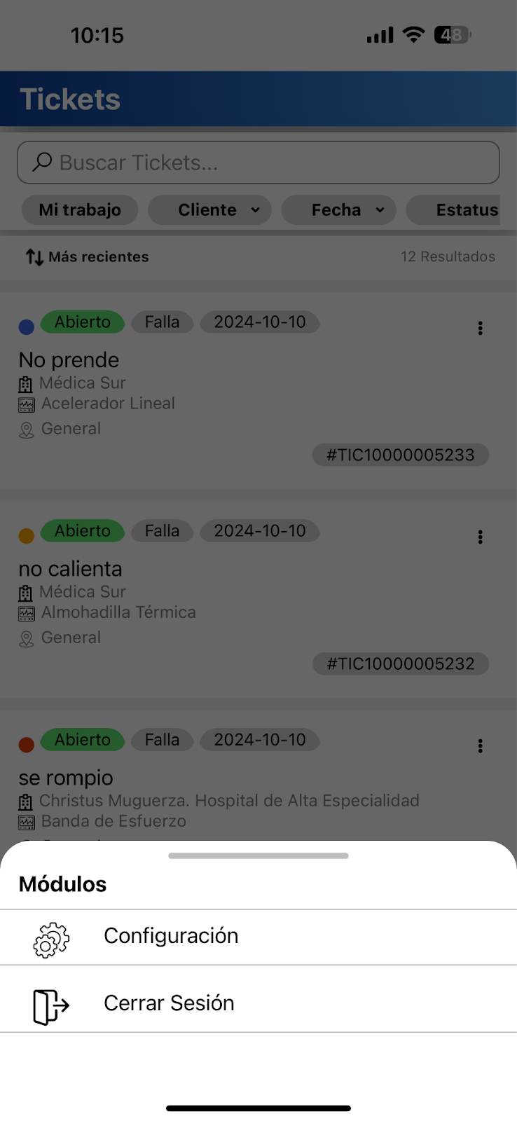 - Tickets: Módulo donde se encuentran listados todos los tickets que hayan sido registrados. En este se muestra el estatus del ticket así como la descripción de este, la cuenta de quien lo realizará, activo y ubicación.