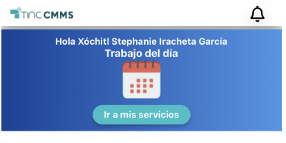 En la parte superior se muestra un mensaje de Bienvenida al usuario, así como el ícono de un calendario el cual podemos ingresar al seleccionar Ir a mis servicios.