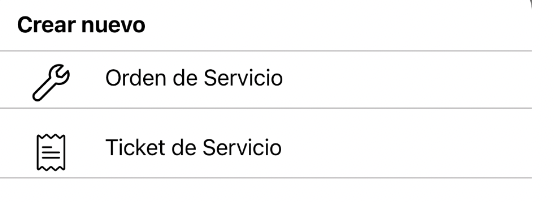 En la parte inferior de la página Principal de la aplicación, se localiza un ícono azul con el símbolo de más (+). Al colocar el cursor sobre este, se desplegará hacia arriba las opciones de creación de Servicio y Tickets de una manera rápida y sencilla.