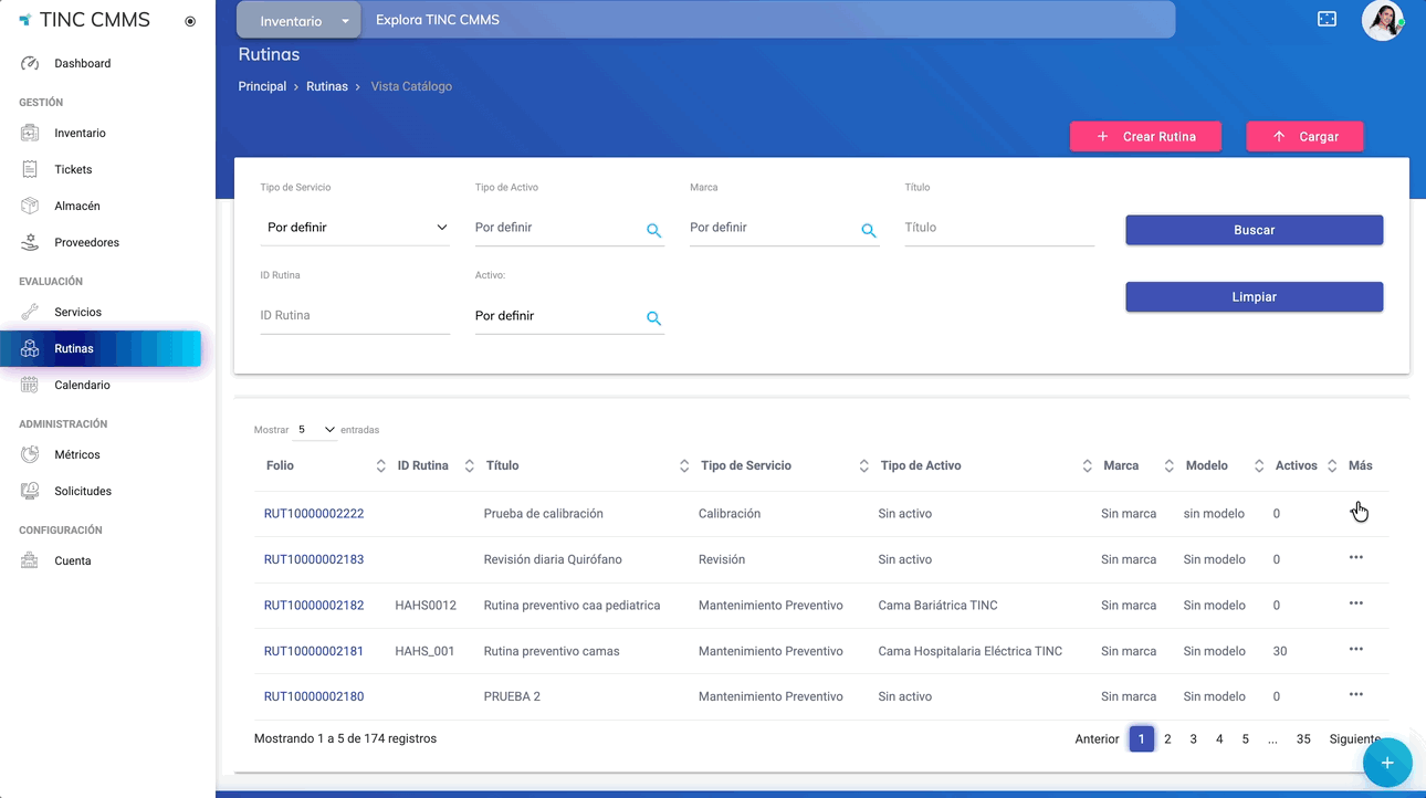El m贸dulo de Rutinas permite gestionar plantillas estandarizadas de mantenimiento o servicio. Adem谩s de crearlas, los usuarios pueden duplicar o eliminar rutinas seg煤n sea necesario para su operaci贸n.
